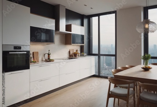 Stunning Modern Minimalist Kitchen with Panoramic City View and Stylish Design