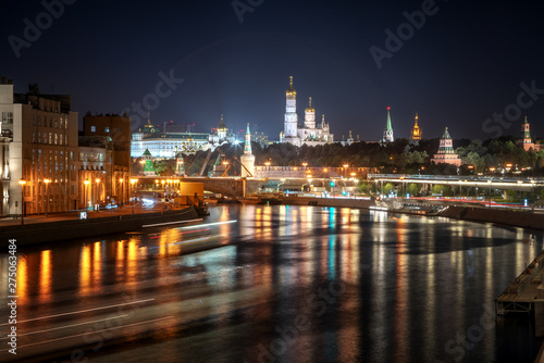 Stunning Panoramic night view of Moscow Kremlin in the summer , Russia