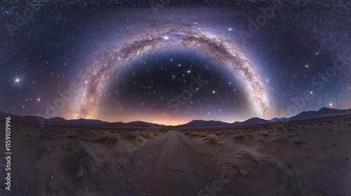 Stunning Panoramic View of Milky Way Galaxy Over Desert Landscape