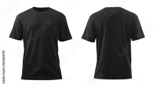 Stunning photo of black t-shirt front and back mockup, isolated on clean white background, blank clothing template for graphic design.