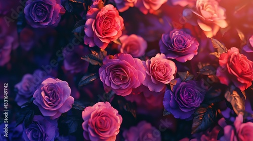 rose, pink rose, flower, garden, dusk, sunset, nature, beauty, romantic, love, spring, blossom, flower petals, leaf, closeup, detailed, vibrant, colours, aesthetic, floral, digital artwork, illustration, botanical, spring flower, vintage, soft light, wallpaper, background, graphic design, poster, website, springtime, macro, flower, rosebush, pretty, elegant, decorative, poster print, artistic, floral background, rose bouquet, hi-res, full frame, dreamy, soft focus, floral pattern