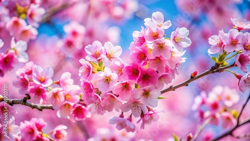 Stunning Pink Sakura Blossoms in Full Bloom, Spring Cherry Tree Branches, Japanese Garden