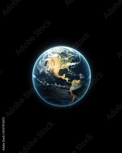 Stunning planet earth space digital illustration black background aerial view global awareness