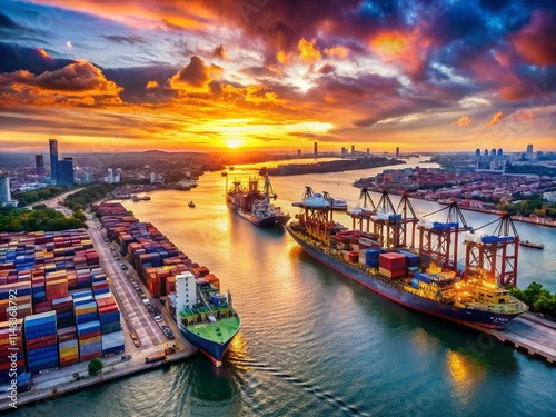 harbor, city landscape, coastal, ocean, waterfront, architecture, building, ship, cargo, sea, sky, dramatic, vibrant, energy, tied-up, photo, photorealistic, hi-res, detail, travel, tour tourism, landscape, seascape, urban, city, port, dock, container, crane, boat, sunset, sunrise, golden hour, day, night, beautiful, stunning, amazing, picturesque, idylli, tranquil, peaceful, calm, powerful