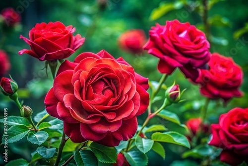 red rose, red flower, rosebush, green leaf, natural beauty, rose garden, colorful flowers, floral arrangement, floral background, soft focus, rose petal, vivid colors, summer flowers, floral pattern