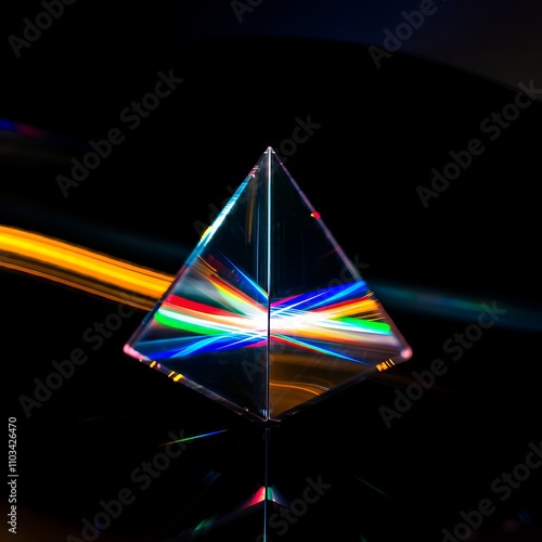 Stunning representation of light refraction through a prism, splitting into a dynamic spectrum of vibrant colors.