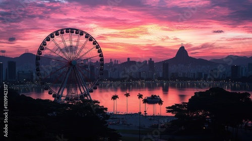 sunset, skyline, city, ferris wheel, water, mountain, cloud, nature, evening, travel, tour tourism, scenic, landscape, vibrant, tropical, silhouette, attraction, peaceful, urban, adventure, beauty, architecture, waterfront, colourful, panorama, serene, dusk, light, leisure, summer, holiday, vacation, relaxation, landmark, horizon, daytime, view, environment, sightseeing, heritage, coastal, journey, picturesque, escape, exploration