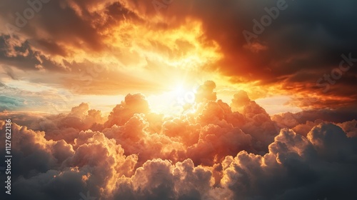 Stunning Sunset Over Majestic Clouds with Vibrant Colors Illuminating the Sky, Capturing the Beauty of Nature's Artwork in a Breathtaking Scene