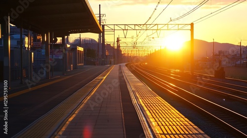 Stunning Sunset Over Train Tracks at Station with Vibrant Colors : Generative AI