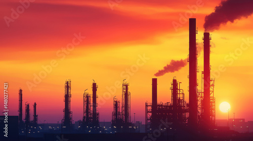 sunset, industrial, smokestack, silhouette, sky, nature, pollution, energy, factory, evening, horizon, orange, cloud, environment, technology, manufacturing, landscape, urban, atmospheric, dusk, refinery, smoke, power, production, machinery, scene, dramatic, twilight, city, structure, skyline, heat, industry, oil, gas, chemical, view, perspective, environmental, impact, colours, site, condition, structure, sector, scenery, development, awareness