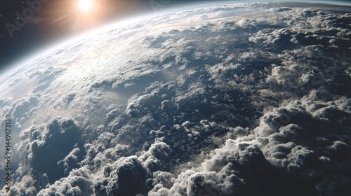 Stunning view of Earth from space, showcasing a breathtaking expanse of clouds illuminated by the sun's rays. A mesmerizing sight of our planet's beauty.