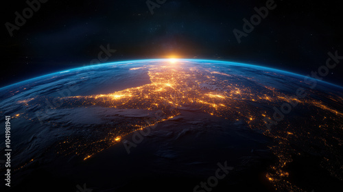 stunning view of Earth showcasing day night boundary illuminated by city lights