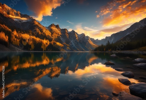 stunning visual majestic mountain sunrise reflected serene lakeside landscape glorious color palette, water, reflection, nature, clouds, scenery, horizon