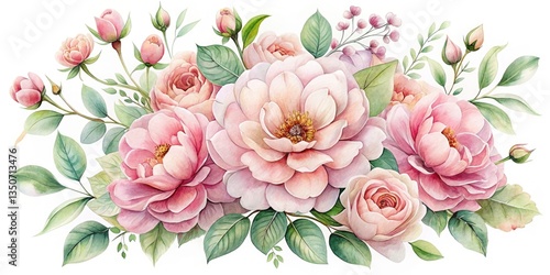 Stunning Watercolor Portrait of Delicate Pink Flowers on a White Background for Floral Art Lovers, Home Decor, and Print Design Inspiration