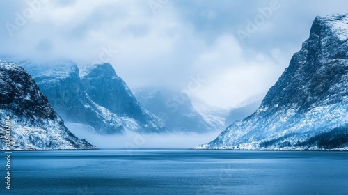 nature, beauty, dramatic, winter, scenery, peace, water, snow, mist, cold, weather, glacé, icy, blue, travel, landscape, norge, fog, mountain, wonderland, still, amazing, cloud, snowy, scenic, quiet, scene, calm