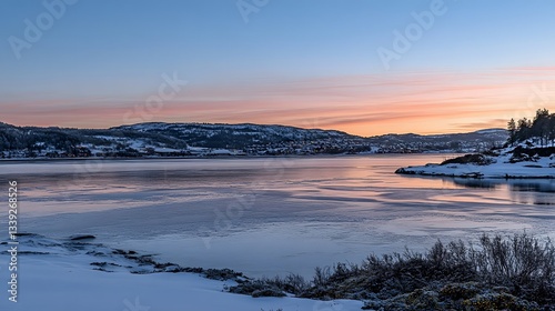 winter, sunset, snow, town, glacé, landscape, cold, nature, sky, water, ice, mountain, tree, village, beautiful, scenic, view, twilight, pink, orange, blue, serene, calm, peaceful, idylli, winter landscape, snow-covered, frozen lake, mountain view, cold weather, scenic view, winter landscape, norge, seascape