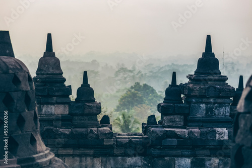 horizontal, outdoors, day, meditation, structure, closeup, cloudy, faith, religious, religion, landmark, history, asia, mist, asian, tour tourism, misty, historic, tropical, fog, foggy, hazy, overcast, haze, temple, indonesia, buddhist, buddhism, indonesian, tropical climate, local landmark, belief, stupa, historical, worship, forest, attraction, stone, destination, travel, tree, color image, unesco, tourist attraction, travel destination