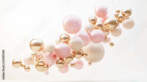 stylish, arrangement, metallic, balloon, gold, pink, background, decoration, festive, event, celebration, luxury, design, concept, party, beautiful, sphere, round, shiny, glossy, elegant, vibrant, artistic, modern, creative