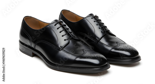 Stylish Black Leather Brogue Shoes for Men on white background