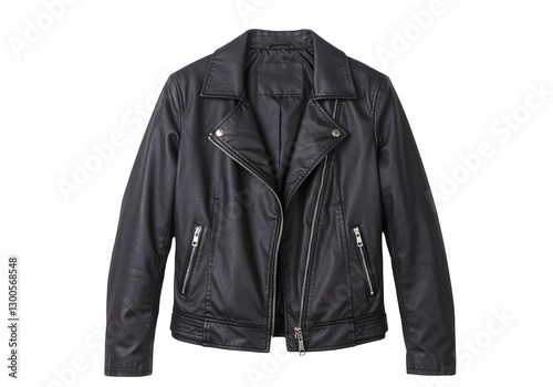 Stylish black leather jacket, isolated on a white background. Modern design.