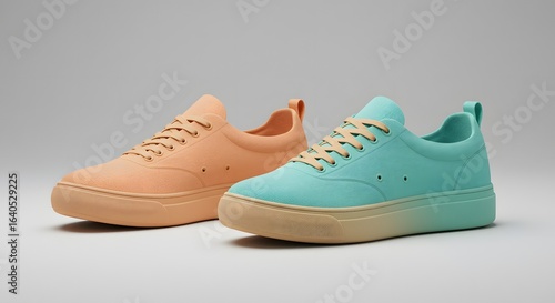 sneaker, shoe, footwear, canvas, fashion, style, casual attire, trendy, modern, peach, teal, blue, orange, beige, lace, pair, studio, product, clothing, apparel, fashionable, comfortable, design, sporty, athletic, youth, unisex, isolated, white background, minimalist, clean, bright, vibrant, dye, colours, summer, spring, lifestyle, accessory, worn, new, shoe