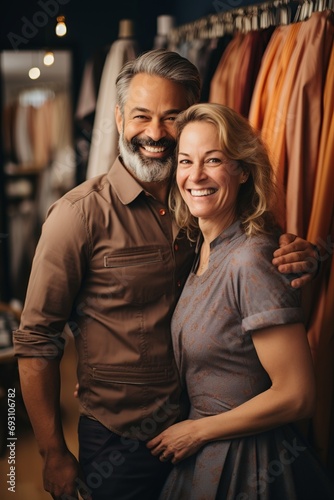 stylish, couple, fashion, boutique, smiling, mature, trendy, elegant, clothing store, shopping, happy, together, love, human relationships, cosy, fashionable, chic, retail, shop, partner, warmth, indoor, friendly, customer service, lifestyle, enjoyment, content, charming, successful, well-dressed, bearded, style