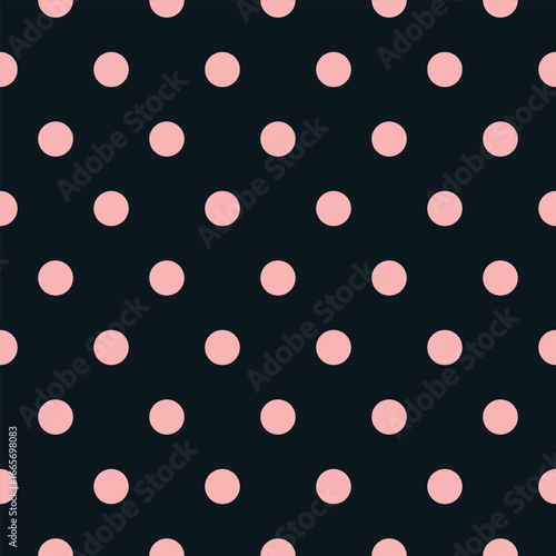 Stylish dark navy background with soft pink polka dots, seamless vector pattern for fabric, wallpapers, and gift wrap.
