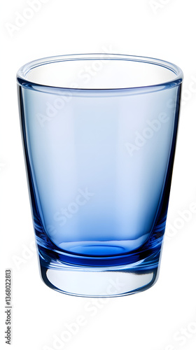 Stylish empty light-blue glass tumbler on white background showcasing modern drinkware design with ample copy space for creative use and ing needs