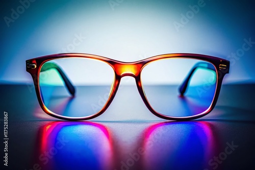 Stylish Eyeglasses Isolated on White Background - Low Light Photography Stock Photo
