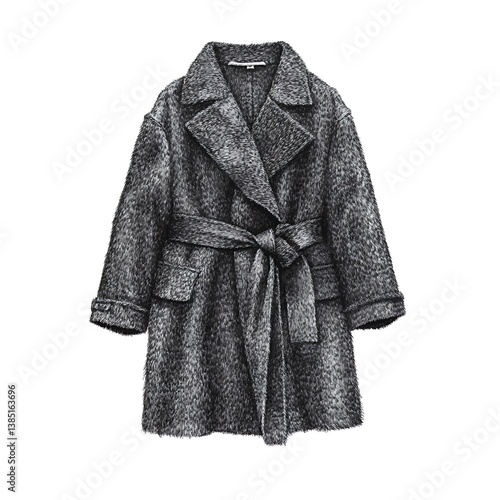 Stylish Gray Belted Coat Illustration A detailed drawing of a fashionable women's winter coat.