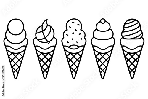 Stylish Ice Cream Line Art Set
