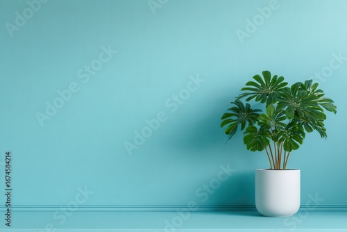 Stylish Indoor Plant in a White Pot Against a Turquoise Wall