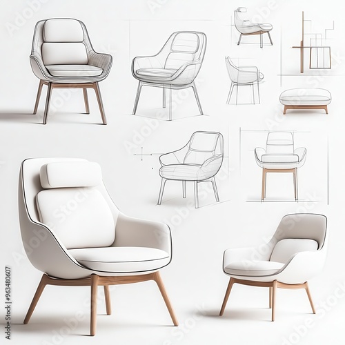 Stylish modern furniture, interior design element, realistic sketch, neutral tones, isolated on white background