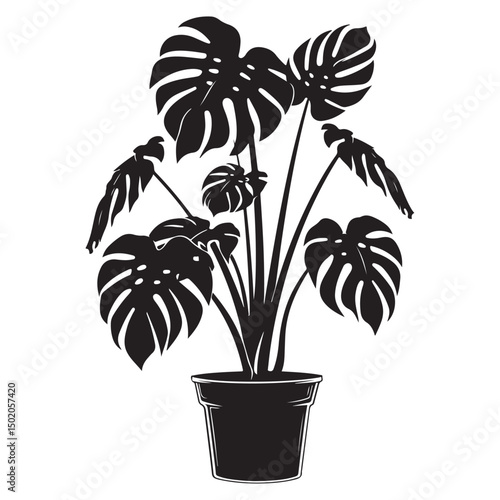 Stylish Monstera Houseplants, Decorative Black Silhouettes for Home and Interior Decor, Tropical Houseplant