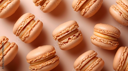 Stylish peachcolored macarons create a trendy background for food lovers. Concept Food Photography, Styling, Peach-colored, Macarons, Trendy Background