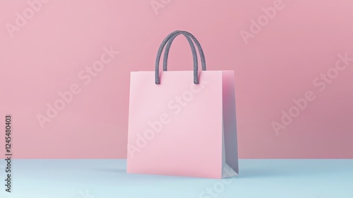 Stylish pink shopping bag on pastel background.