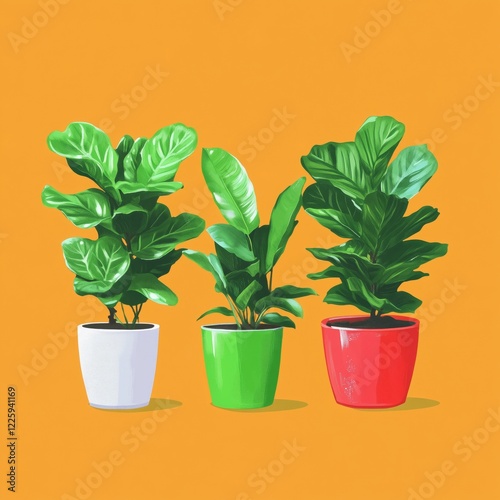 Stylish potted plants with green foliage arranged on a vibrant yellow background, blending modern aesthetics and nature-inspired decor