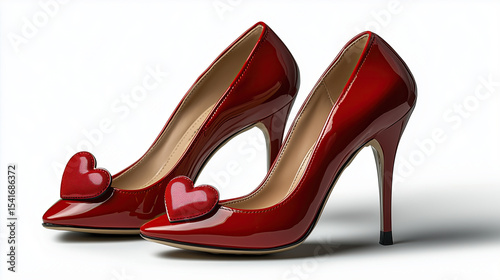 Stylish red high heels with heart shaped embellishments, perfect for romantic occasions and special events