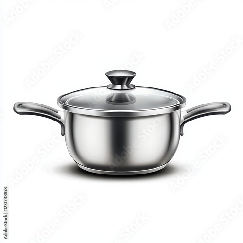 Stylish stainless steel saucepan with a glass lid, centered on a clean white background