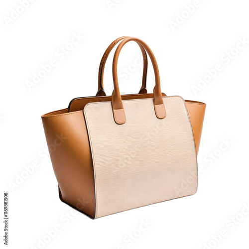 Stylish Two Tone Leather Tote Bag Against Transparent Background