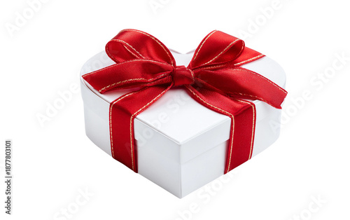 Stylish valentine gift box featuring bright red ribbon perfect for love inspired presents and seasonal occasions isolated on transparent background PNG