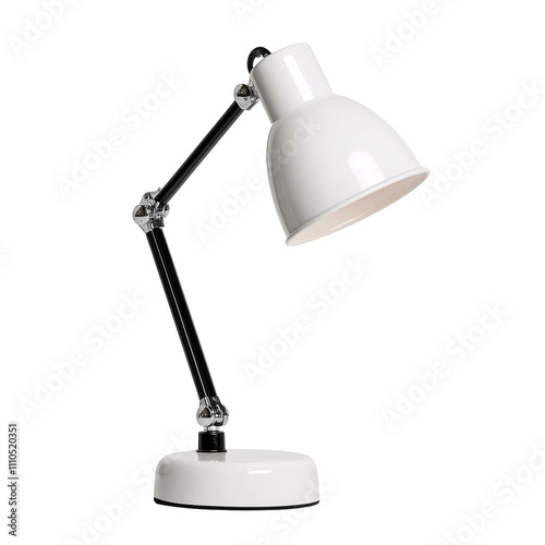 stylish white desk lamp with a metal base and a classic shade isolated on a transparent background