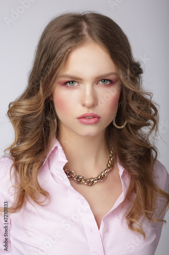 lady, necklace, precious, proud, posh, woman, hair, loosing, flowing, brunette, hazel, auburn, chain, chainlet, gold, massive, make-up, accessory, natural, face, young, girl, female, pink, skin, fresh, blouse, white, makeover, visage, stare, view, looking, nice, good, groomed, well, neat, stylish, elegance, caucasian, 1, portrait, adult, charming, attractive, cute, collar