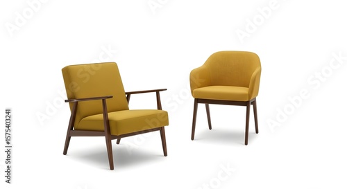 Stylish Yellow Accent Chair and Lounge Chair Modern Furniture Design on White
