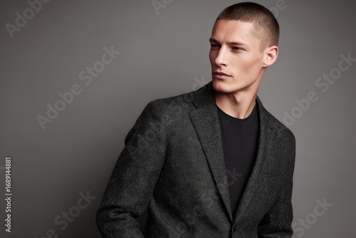 man, model, fashion, style, portrait, jacket, clothing, apparel, modern, photogenic, confidence, male, background, suit, elegance, sharp, look, hair, expression, neutral, trendy, smart, chic, sophisticated, beauty, photo, studio, attire, casual attire, young, professional, vibe, fit, attractive, pose, design, profile, business, individual, luxury, quality, image, aesthetic, minimalist, personality