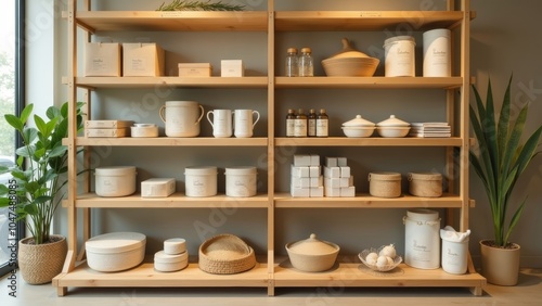 Stylish Zero-Waste Merchandise Display on Eco-Friendly Bamboo Shelving