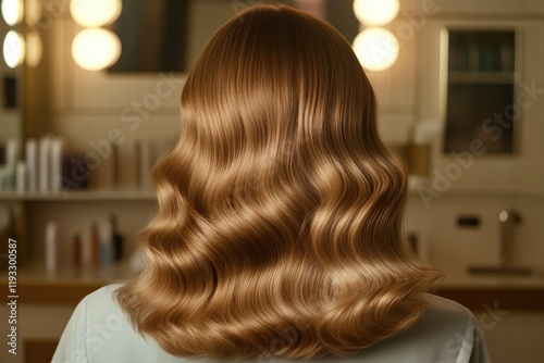 stylist showcasing blow-dried hairstyle with natural waves hair shine highlighted under salon lights