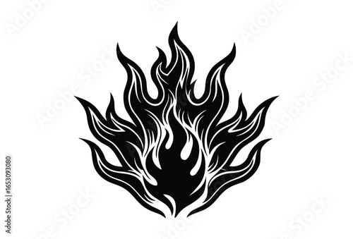 flames, fire, illustration, drawing, vignetting, black, and, white, monochrome, graphic, design, element, symbol, icon, energy, heat, hot, danger, power, intense, abstract, art, tribal, tattoo, style, vintage, grunge, dark, bold, energetic