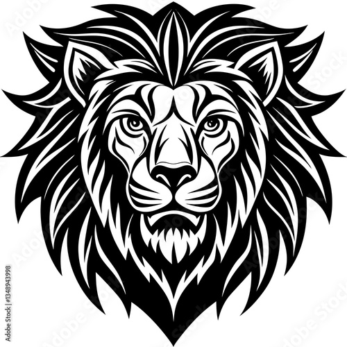 Stylized Black and White Lion Head Vector Illustration for Mascot or Logo Design