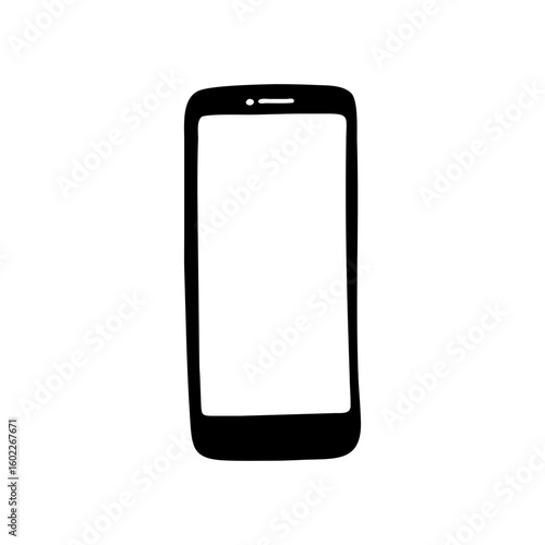 smartphone, mobile, device, phone, mobile phone, communication, technology, screen, black, white, display, touch screen, portable, electronic, contraption, wireless, cellular, digital, modern, blank, empty, frame, silhouette, icon, vector, illustration, isolated, simple, hand-drawn, design